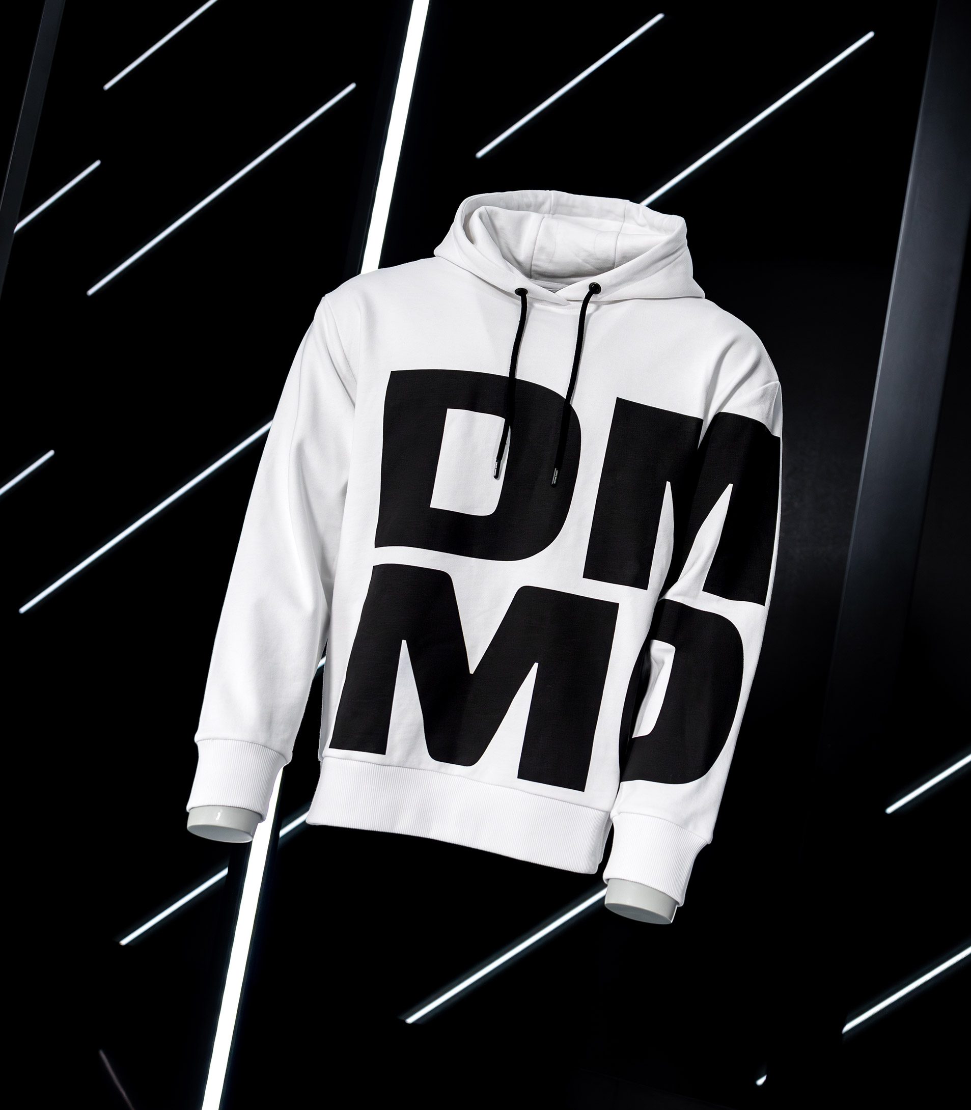 Statement hoodie with a striking DMG MORI logo on the front and back in a modern black & white design, made from comfortably soft cotton fabric.
